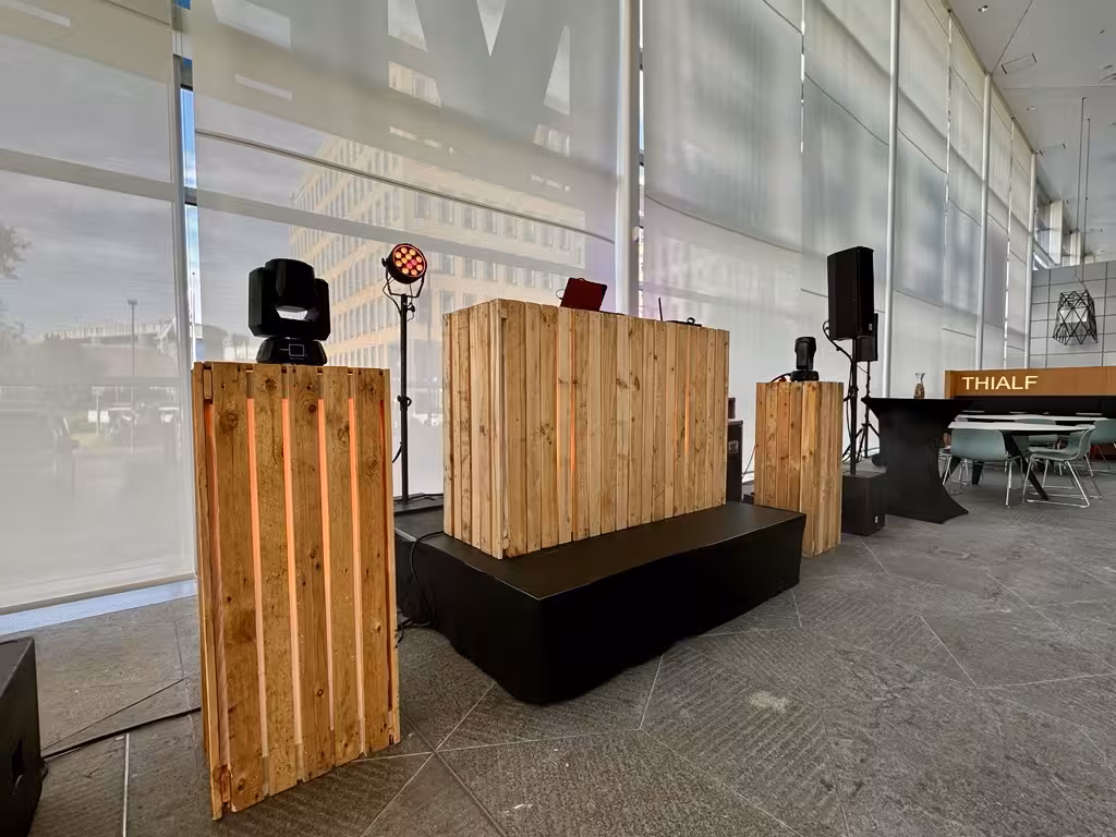 Een stoere look met ons industruele DJ Booth. Zeer geschikt voor verlichte ruimtes of buiten